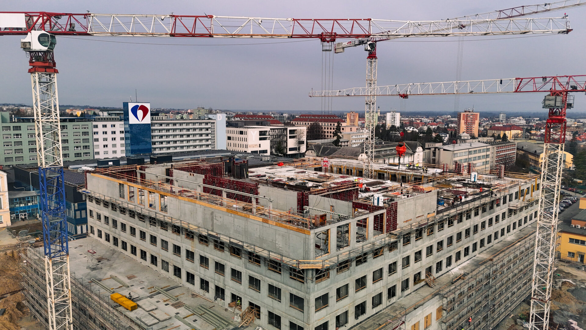Podívejte se na aktuální stav stavby Fakultní nemocnice Olomouc, kde zabezpečujeme realizaci monolitické konstrukce budovy B „Franz Josef“. Pomalu, ale jistě finišujeme.
