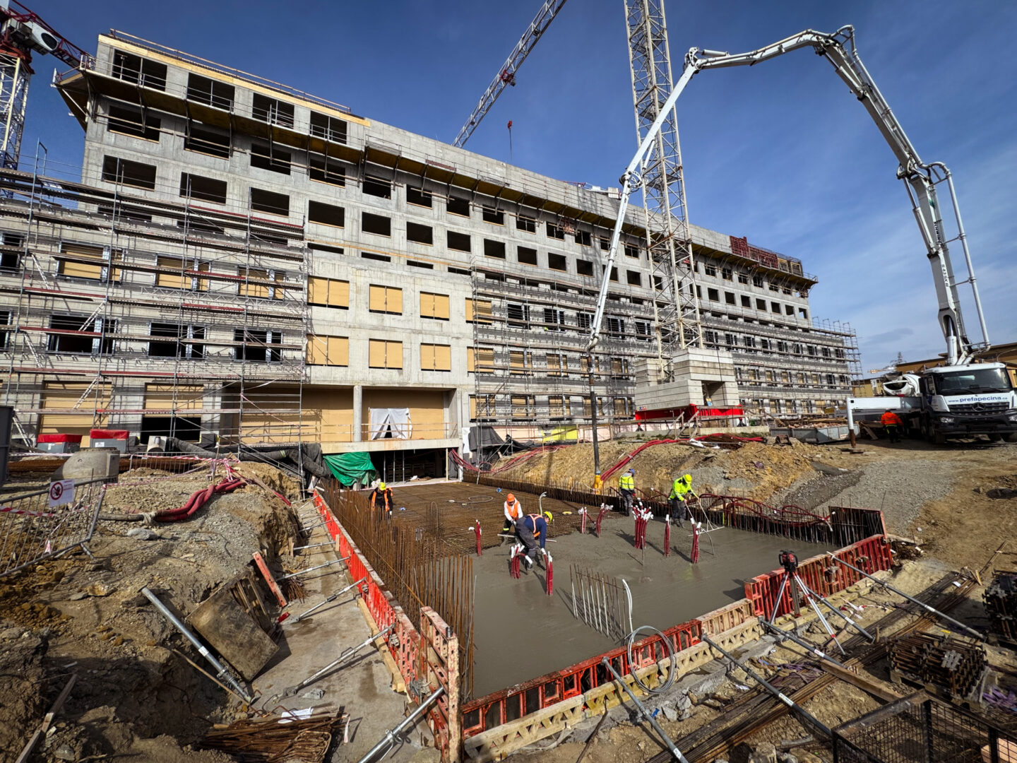 Provedli jsme betonáž hlavního vjezdu do garáží budovy B a jsme zase o krok blíže k dokončení hrubé stavby.